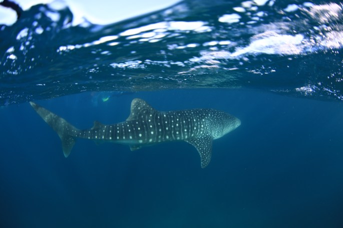 That first entry into the water I was not sure if I was going to hyperventilate or pee my pants I was so excited.  However, as soon as I saw this majestic beast underwater all that disappeared to be overpowered by an inner calm and peace.  This first gentle giant was such a chilled out guy, languidly swimming slow enough for everyone to admire him fully.  His white dots appeared to have been painted with dabs from a brush and his stripes formed such intricate patterns they were breath-taking. Whale sharks are the biggest fish in the ocean and can grow to 18m long and weigh up to 15 tonne.  They have recently been upgraded from a vulnerable to endangered species with numbers having halved in the last 75 years, so swimming with one fills you a sense of awe, wonder and responsibility.